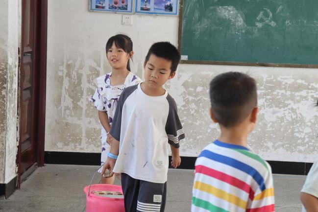 先锋队员入场,与守关志愿者各抽3张数字牌,展开紧张的三局两胜“智斗”。胜者向队友发出“安全”指令,其余队员用扁担挑着水桶,按地面编号1→2→3顺序绕行障碍,途中须绕凳一圈,若碰凳或走错序号须重来。队员们屏住呼吸,贴着墙根,脚步轻挪,绕过“堡垒”(凳子),紧张有序地接力前行。当最后一名队员成功“跃”出教室门槛,象征着“长征”胜利抵达终点,全班爆发出雷鸣般的掌声和欢呼,胜利的喜悦达到顶点!