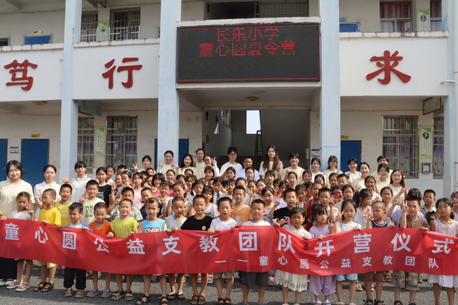 童心汇聚爱,圆梦在支教。2025年7月9日上午,bevictor伟德官网“童心圆”公益支教团队与江...